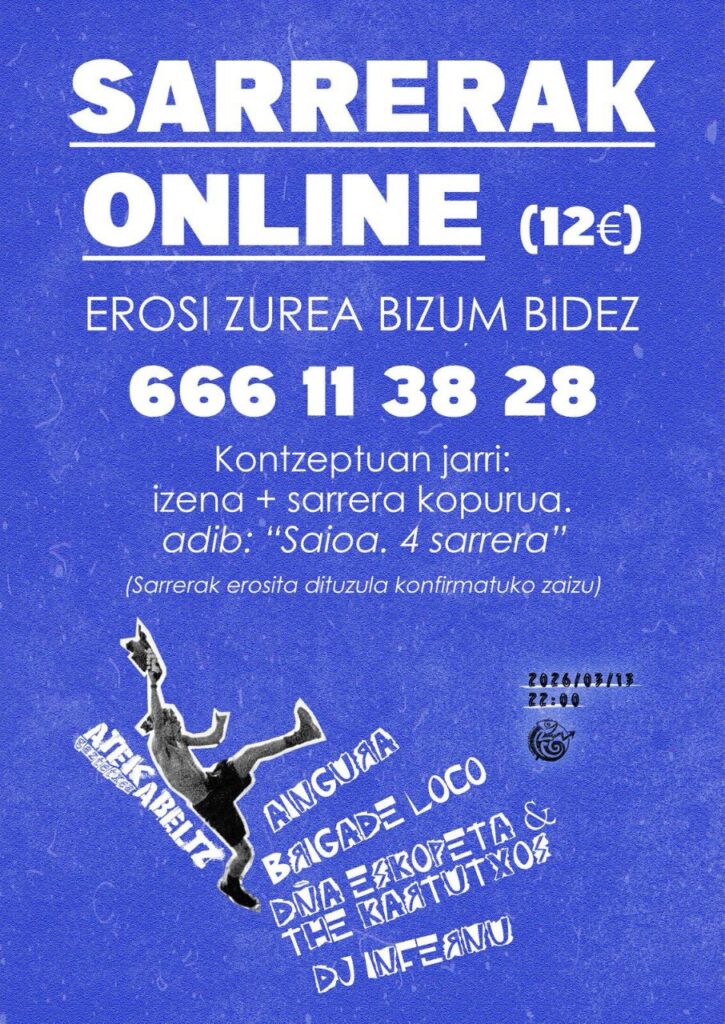Atekabeltz Gaztetxean martxoaren 13an ospatuko da kontzertua eta jasotako dirua Aroztegia proiektu espekulatzailearen aurka aritu ziren baztandarren zigorrak ordaintzen laguntzeko bideratuko da. Aingura, Brigade Loco, Dña Eskopeta & The Kartutxos eta Dj Infernu igoko dira oholtzara.