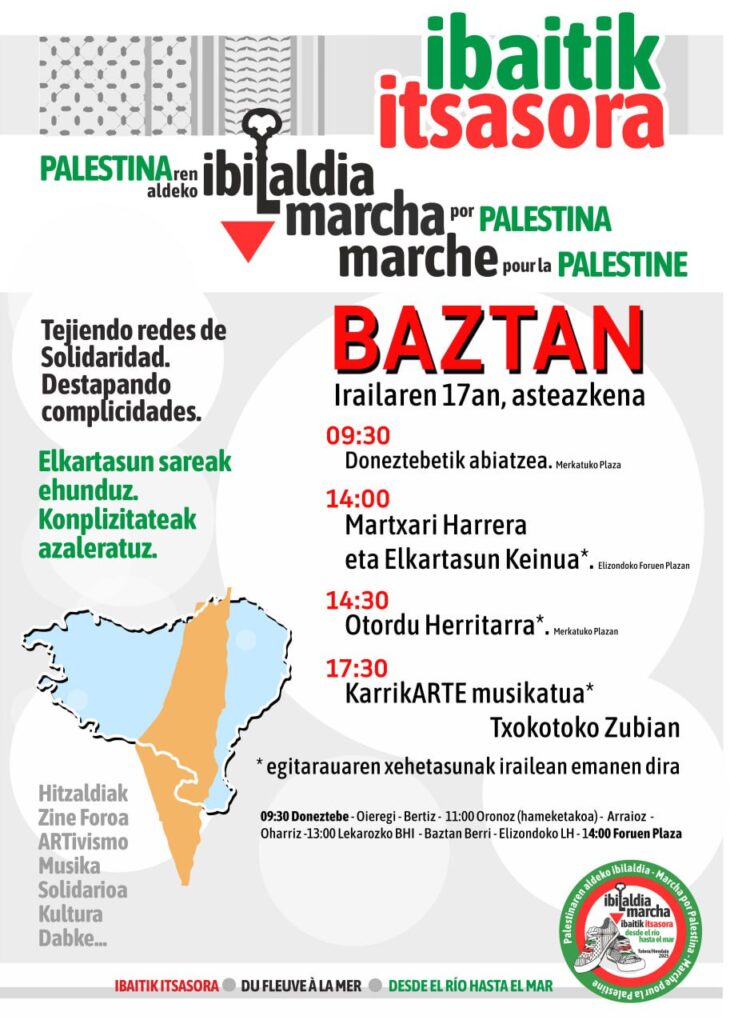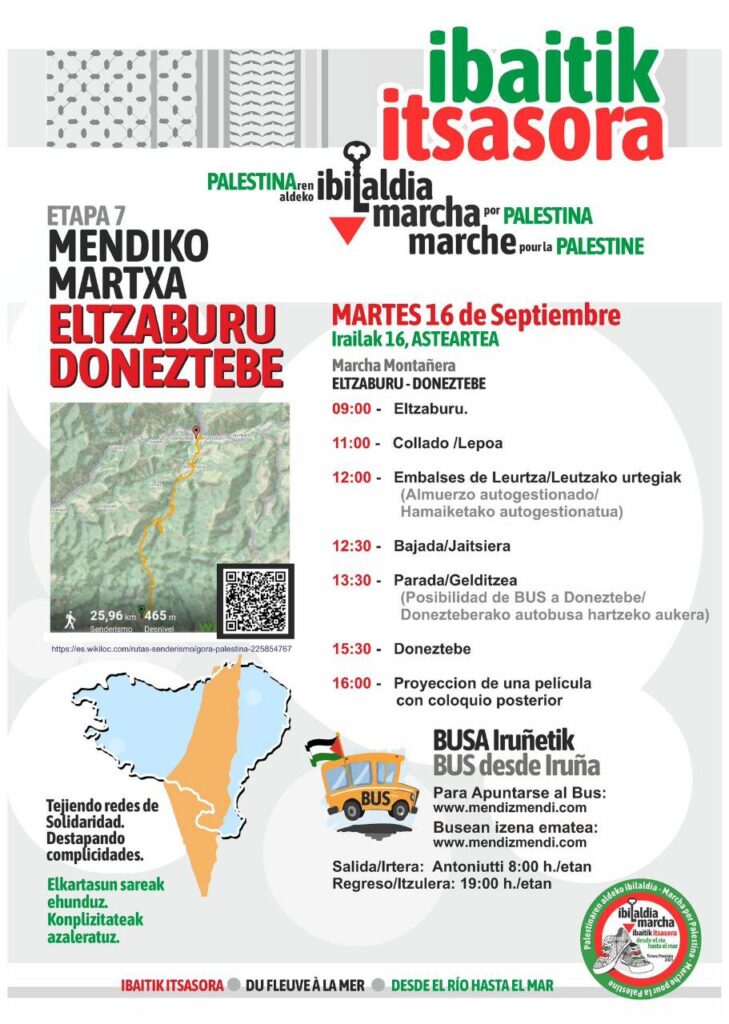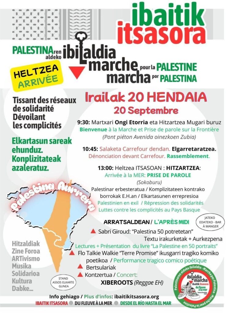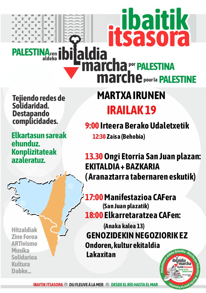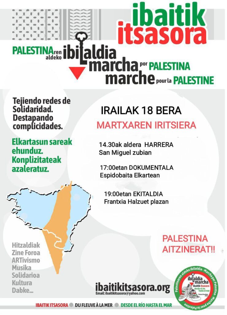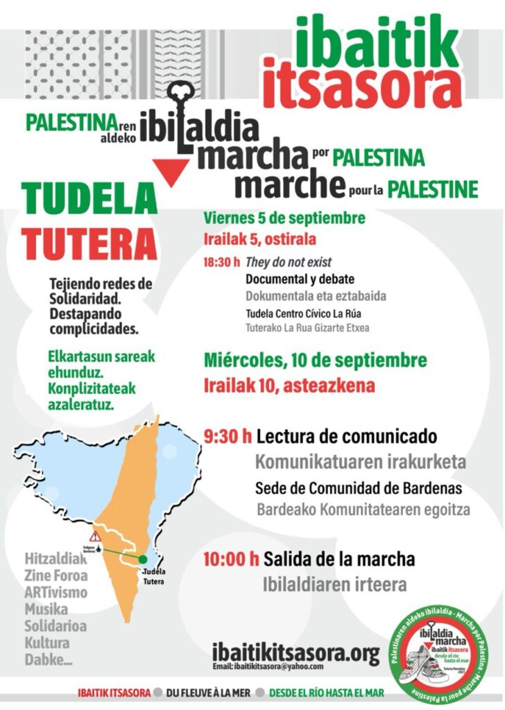 Palestinarekin elkartasunean aritzen diren hainbat eragileek antolatuta, "Ibaitik Itsasora" ibilaldia Tuteratik Hendaiaraino eginen da 10 egunetan. Bidean zehar sionismoarekin konplizidadeak salatuko dituzte.