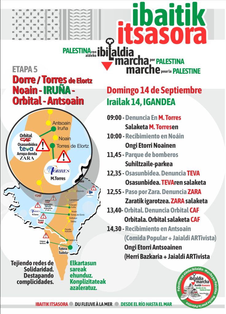 Bestetik, sionismoarekin dagoen konplizidade ezberdinak salatu nahi dituzte antolatzaileek. “Gure presentziarekin eta salaketarekin, okupazioarekin eta genozidio sionistarekin kolaboratzen duten Euskal Herriko enpresa eta erakundeen operazio-guneak ikusaraztea” dute helburu. Ildo horretan, Bardetako tiro eremua, CAF eta MTorres enpresak, Zara katea, Carrefour supermerkatuak edo TEVA botika-industria salatuko dituzte. “Gazako genozidioak eta Israelek Palestinan egiten duen okupazio militarrak etenik ez izateko arrazoi nagusietako bat mendebaldeko gobernuek eta empresek horren bidez irabaziak lortzen dituztelako. Gazako genozidioarekin eta Palestina okupazioarekin irabaziak dituzten enpresa horietako batzuk aritzen dira Euskal Herrian. Israelentzat gerra-azpiegiturak edo makinak eraikitzen dituzte, edo harekin negozioak egiten dituzte. Europako enpresak ere badira, estatu sionistan inbertitzen dutenak eta merkataritza-guneak Israelen eta Palestinako lurralde okupatuetan ezartzen dituztenak”, azaltzen dute.