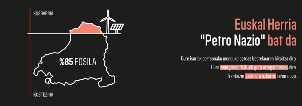 “Gure lurraldearen egoera energetikoarekin kezkatuak gauden herritarrak gara, klima-larrialdearen testuinguruan erregai fosilen kontsumo eta menpekotasun oso handia dugulako. Horregatik, trantsizio justu eta azkar baten aldeko jarrera gizarteratu nahi dugu, fokua erregai fosiletan jarriz eta berriztagarriak trantsizioaren tresna garrantzitsu bat direla ulertuta: hemen eta orain behar ditugu”, adierazi dute zabaldu duten oharrean.