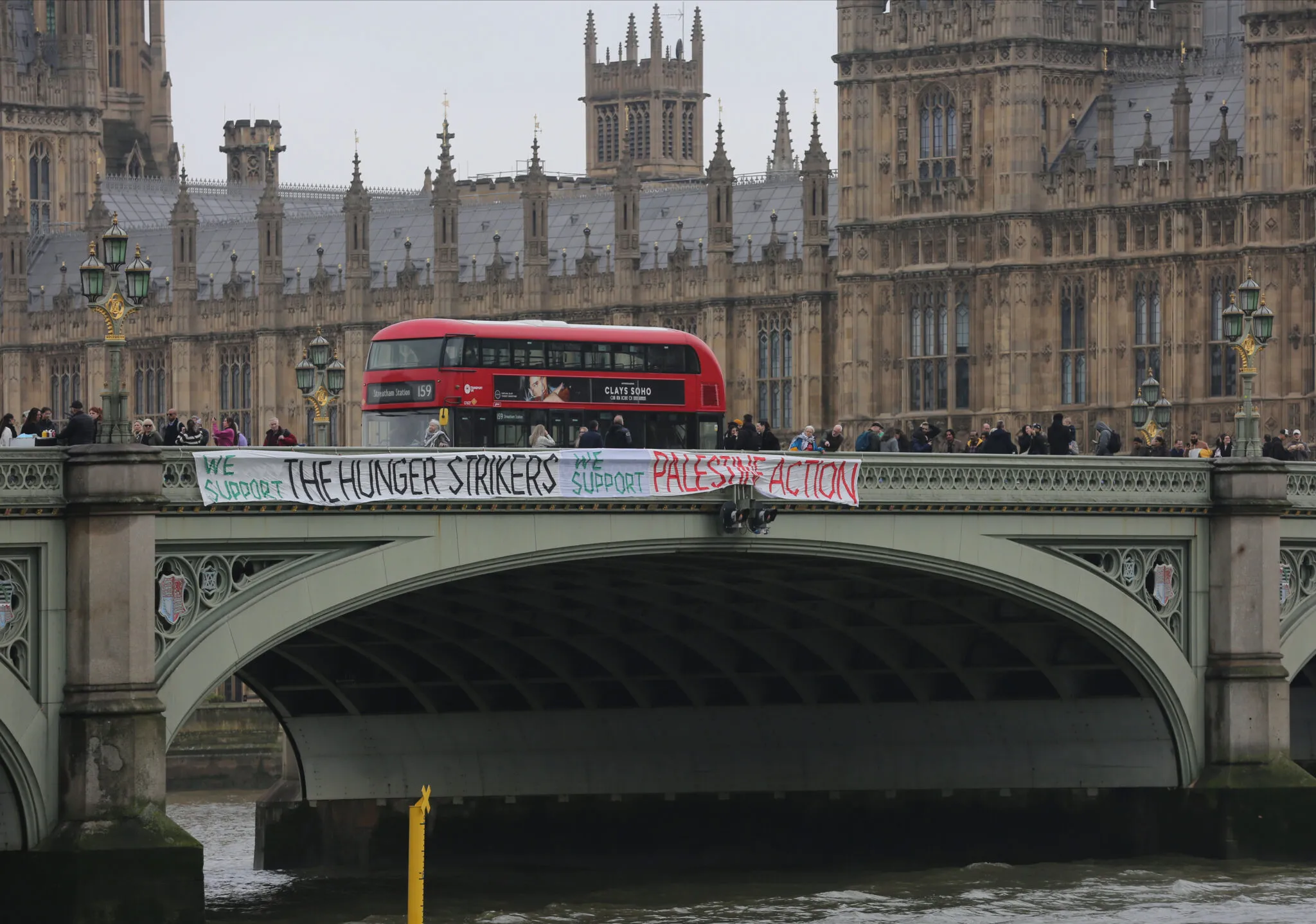 Palestinarekin Elkartasunak elkarretaratzea deitu du larunbat honetarako, hilak 17, Palestine Actioneko ekintzaileei elkartasuna adierazteko eta Palestinarekiko elkartasuna munduan zehar jasaten ari den errepresioa salatzeko. Kontzentrazioaren amaieran, Erresuma Batuko eta Israelgo bandera batzuk erre dituzte.