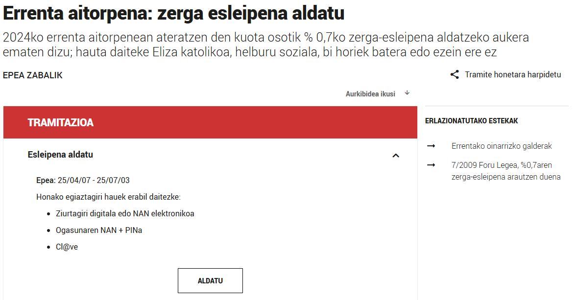 Errenta aitorpenean “Gizarte Helburuen” laukitxoa txuritan ez uzteko deia