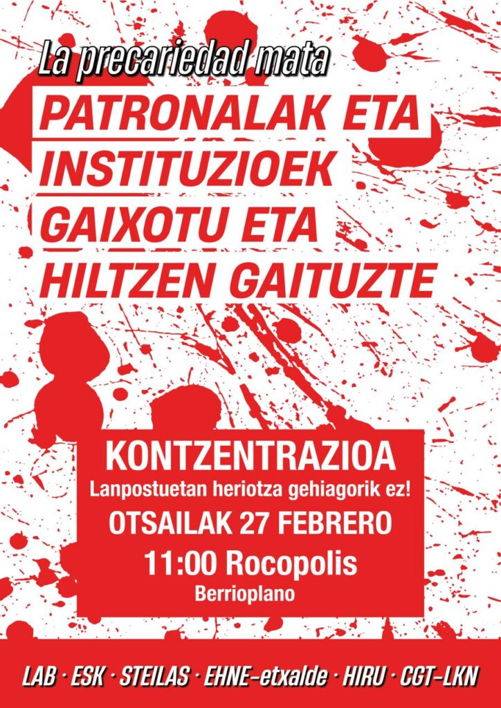 LAB sindikatuak galdetu du “zenbat heriotza gehiago gertatuko diren altuerako erorikoen