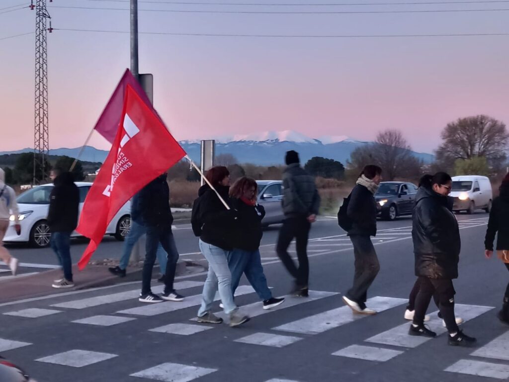 Hasi da greba orokorraren mobilizazioak eta ekintzak Mutiloako industriagunean, porlanezko bidoiekin moztu dute errepidea @LABnafarroa-ko kideek.