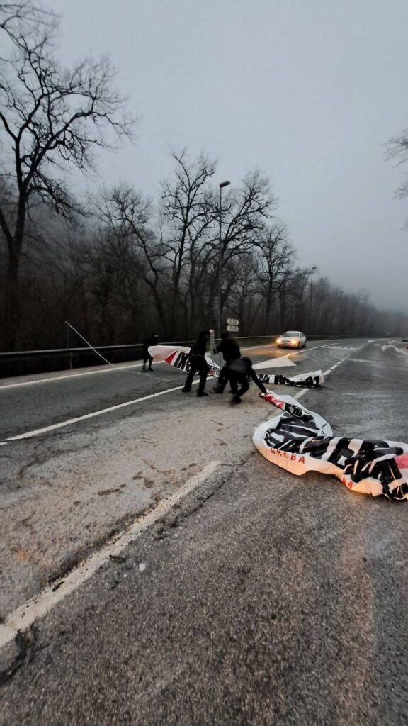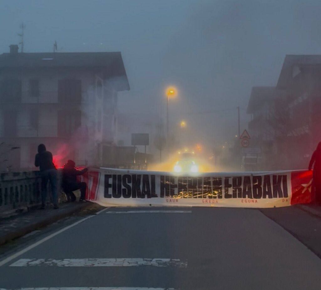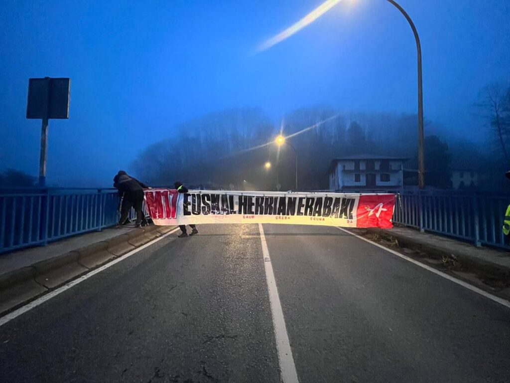 Hasi dira greba orokorraren mobilizazioak eta ekintzak Mutiloako industriagunean, porlanezko bidoiekin moztu dute errepidea @LABnafarroa-ko kideek.