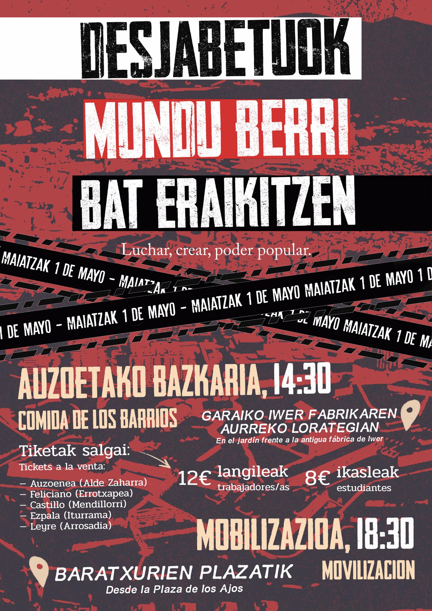 Maiatzaren Lehenean, hainbat mobilizazio eginen dira Euskal Herriko hiriburuetan, EHKS, CGT, CNT, ESK, Solidari sindikatuek deituta, langile klasearen pobretzearen, gerren eta desberdintasun sozialen aurka.