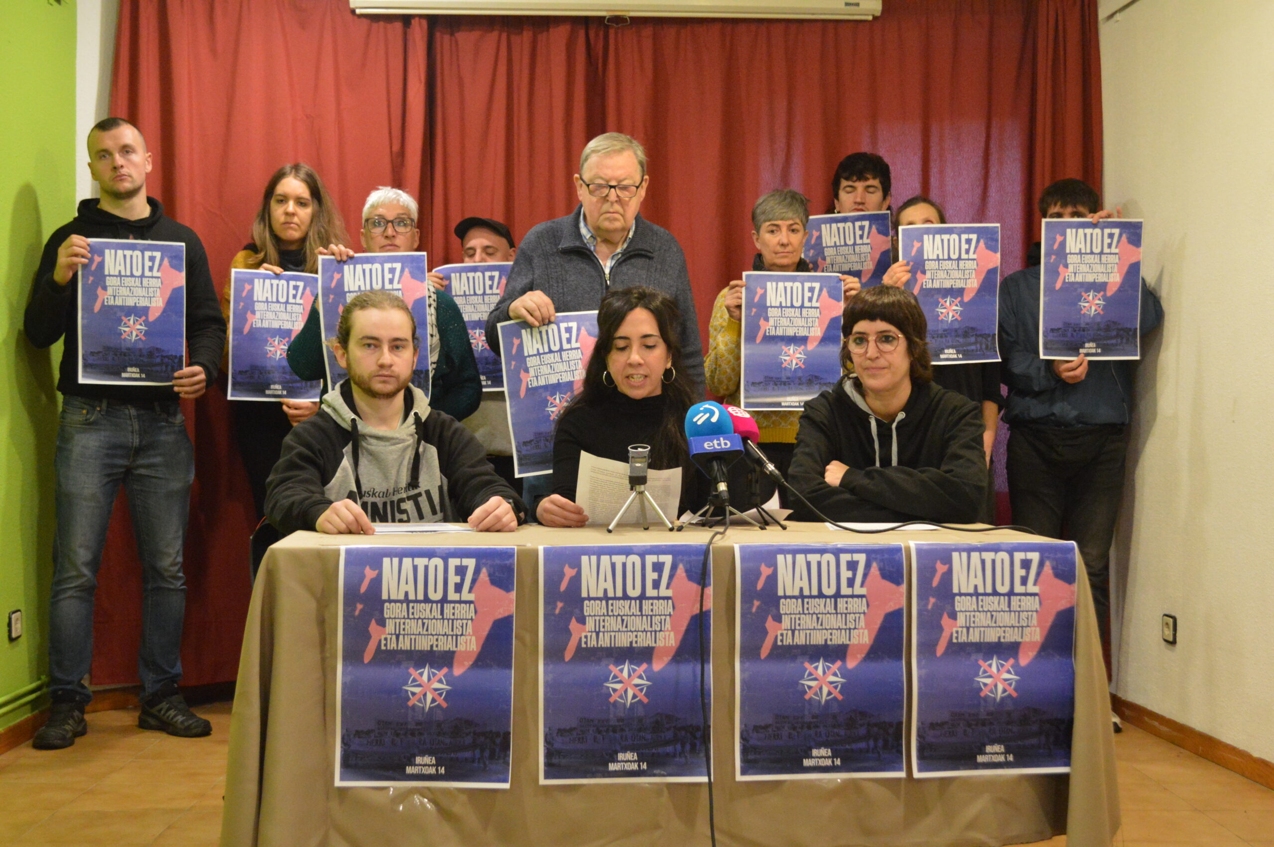 Askapena, Bardea Ya, Bultza EHm-l, Euskal Herriko Etxebizitza Sindikatuaren Sarea, Euskal Herria Bizirik, Indar Nafarroa, Jardun, Otan Ez Plataforma eta Zabaldi taldeek manifestazioa deitu dute martxoaren 14rako Iruñean, duela 40 urte Euskal Herriak NATOri ezetz esan ziola gogorarazteko. “Askapen nazional eta sozialerantz aurrera egiteko, beharrezkoa da Espainiako eta Frantziako estatuetako eta Europar Batasuneko aparatu politiko eta ideologiko, errepresibo, erauzle eta belizista guztiak suntsitzea. Are gehiago, kapitala nazioz haraindi antolatzen da, eta, beraz, euskal herri langilearen borroka internazionalismotik antolatu behar da “.