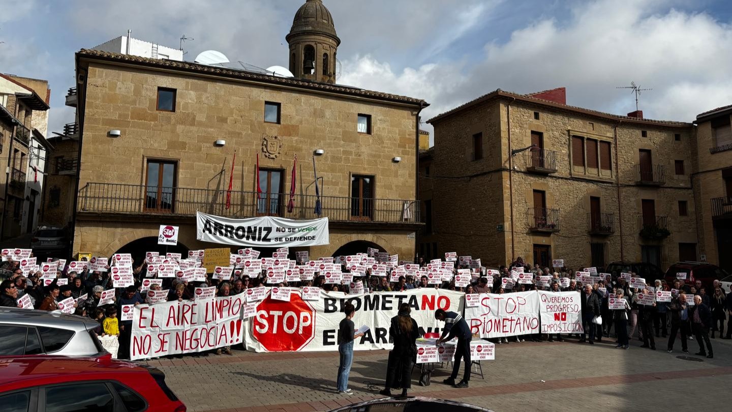 Mugitu! Mugimenduaren ekintza Nafarroako Enpresaburuen egoitzan AHTa salatzeko
