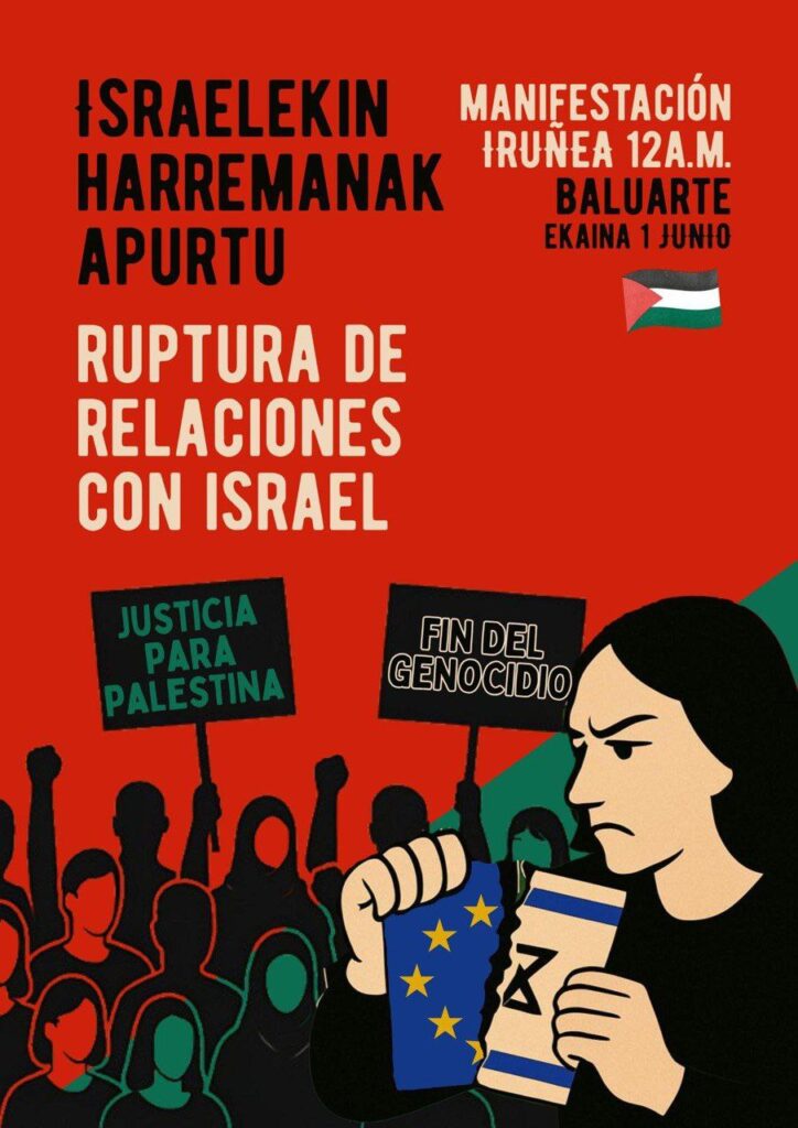 Nafarroako Palestinarekiko elkartasun taldeetatik, premiazkoa deia egin dute igande honetan kalera ateratzeko “Palestinako biztanleriaren aurkako Israelgo basakeria jasangaitza” salatzeko eta Estatu sionistarekin harreman oro eteteko eskatzeko. “Hitzak oso ondo daude, baina orain ekintza eskatu behar dugu!”. Manifestazioa Baluarte Plazatik abiatuko da, eguerdiko 12.00etan.