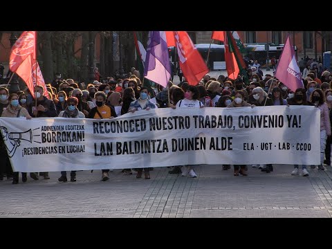 Adinekoen egoitzetan lan baldintza duinak lortzeko greba eguna egin dute gaur langileek