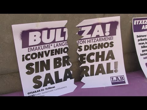 LABek elkarretaratzea egin du Iruñeko Udaletxearen parean eskola publikoen garbiketetan dagoen “iruzurra” salatzeko