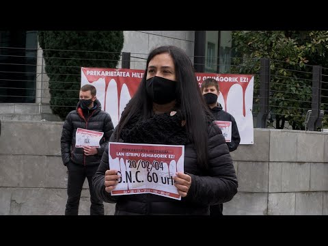 Lan istripuen odolustea geldiarazteko premiazko neurriak eskatu dituzte sindikatuek CEN egoitzaren aurrean
