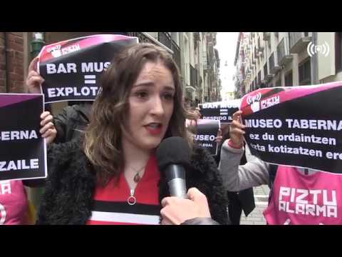 Protesta de Piztu Alarma frente al Bar Museo de Iruñea, acusado de “explotación” a sus trabajadoras