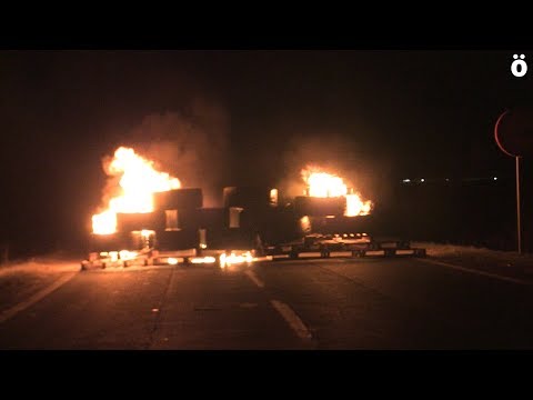 El 4º día de huelga indefinida en Huerta de Peralta comienza con barricadas de fuego