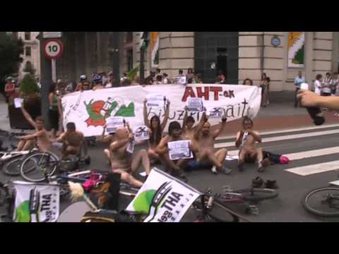 AHTren aurkako ekintza burutu dute Bilboko Adifen bulegoaren aurrean