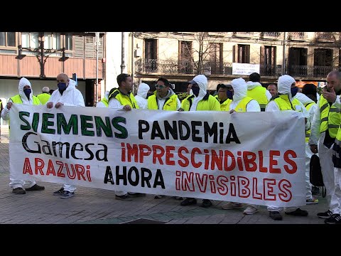 La plantilla de Siemens Gamesa en huelga indefinida se concentra ante el Parlamento