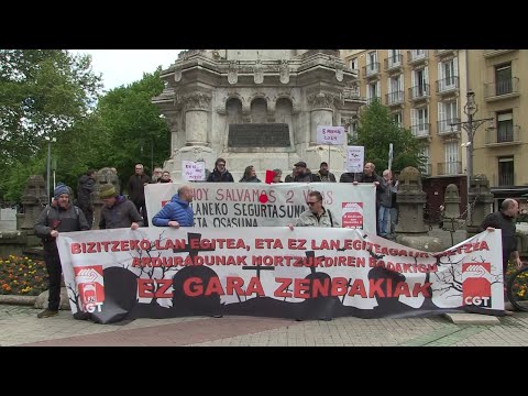 Sindikatuek auto bat irauli dute Iruñean, errepideetako lan istripuen kopuru altuaz ohartarazteko eta prebentzio falta salatzeko