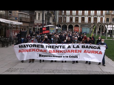 Las personas mayores se echan a la calle en Iruñea este viernes en contra de la brecha digital en los servicios bancarios