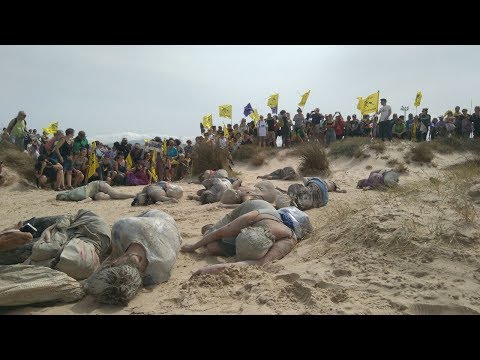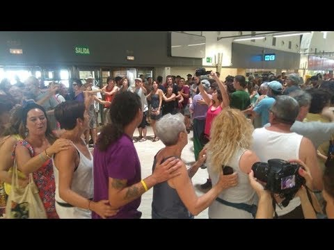 Mugak Zabalduz protesta por las deportaciones en caliente ante Vueling e Iberia en el aeropuerto de Sevilla