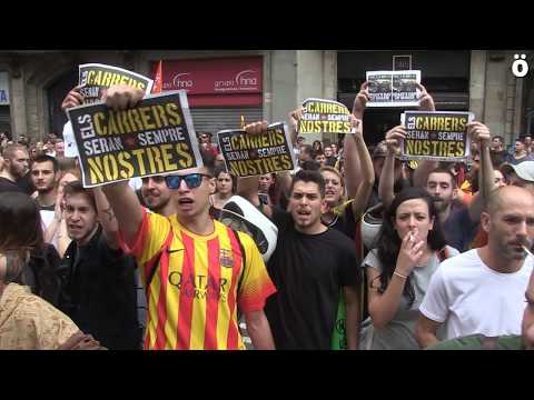 “Demokrazia eta erabakia” lemapean ehunka lagun atera dira kalera Iruñean Kataluniarekin elkartasunez