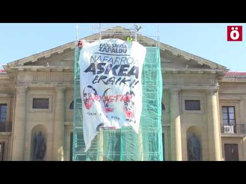 Ernai-k ikur faxista guztiak kentzea aldarrikatu du pankarta erraldoi bat jartzen Diputazioan