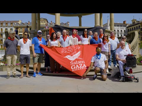 Salam Gaza Nafarroa presenta junto a las Peñas un pañuelo solidario para las fiestas que apoya proyectos de emergencia en Gaza